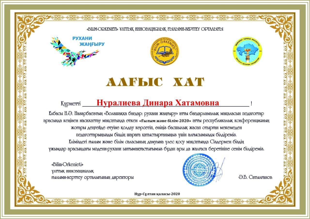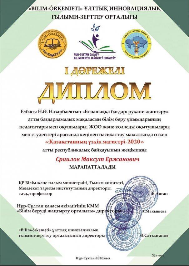 "Қазақстанның үздік магистрі-2020" » СШ №34