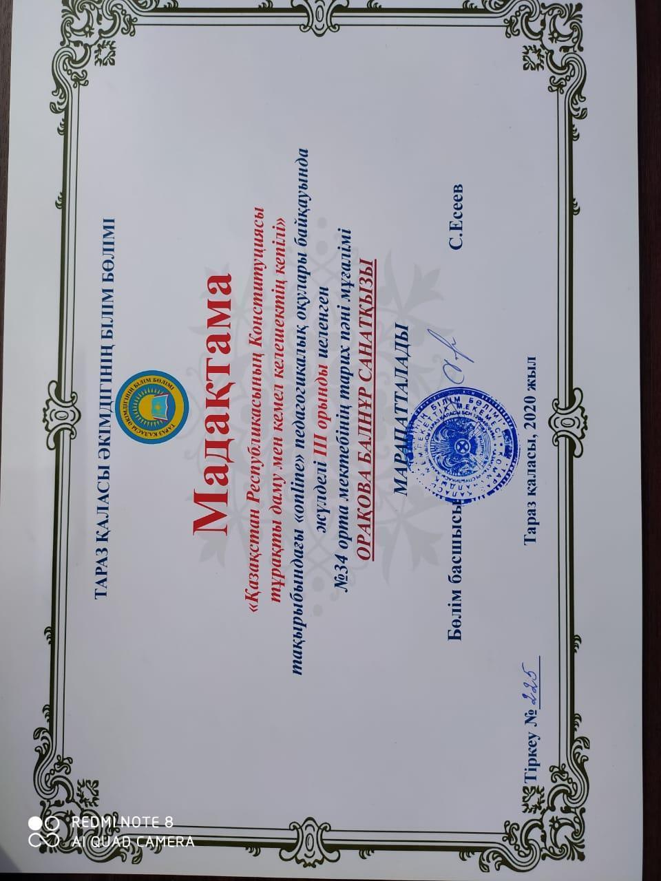 Орақова Балнур Санатқызы » СШ №34