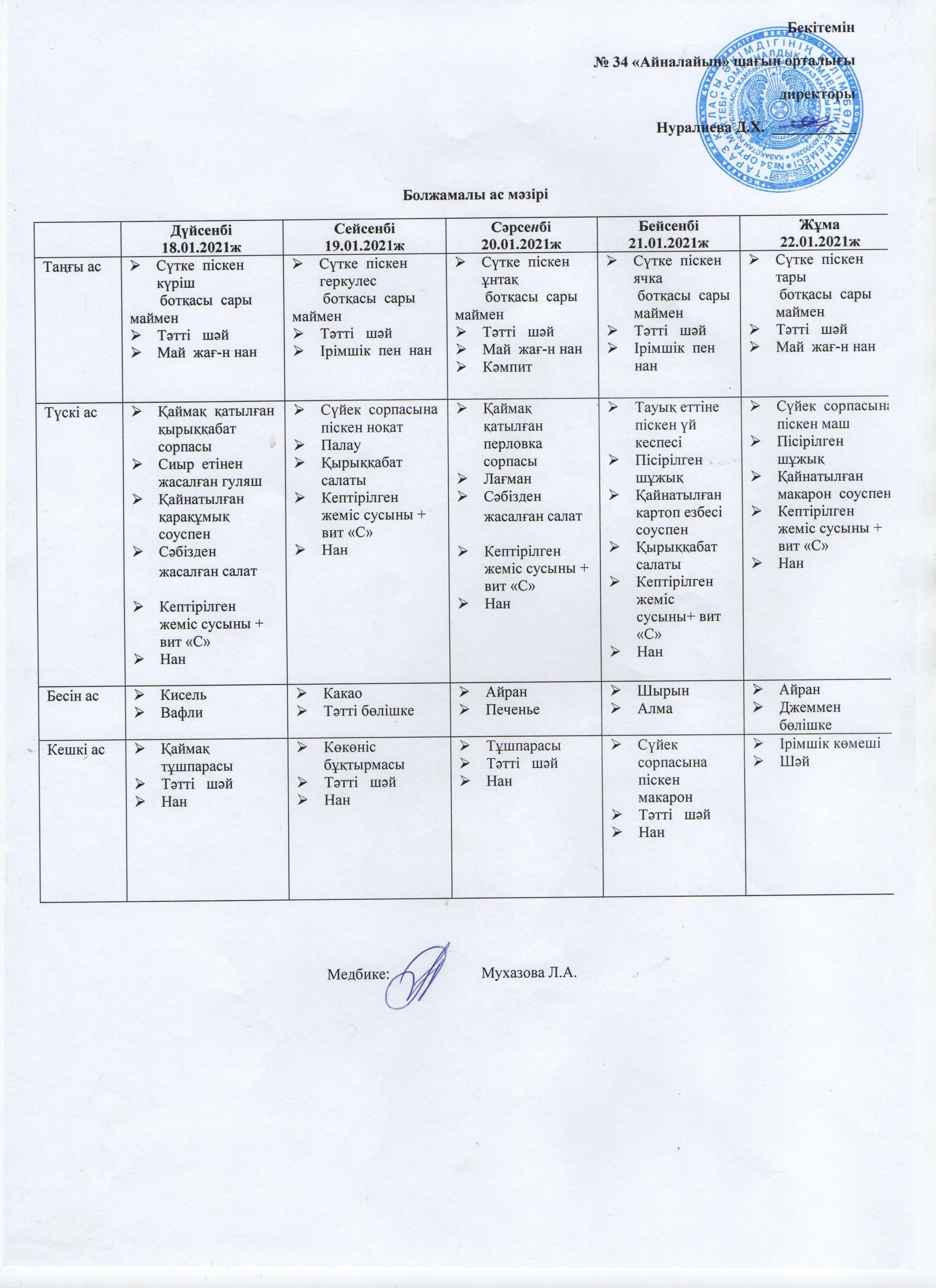 Айналайын шағын орталығының ас-мәзірі! » СШ №34