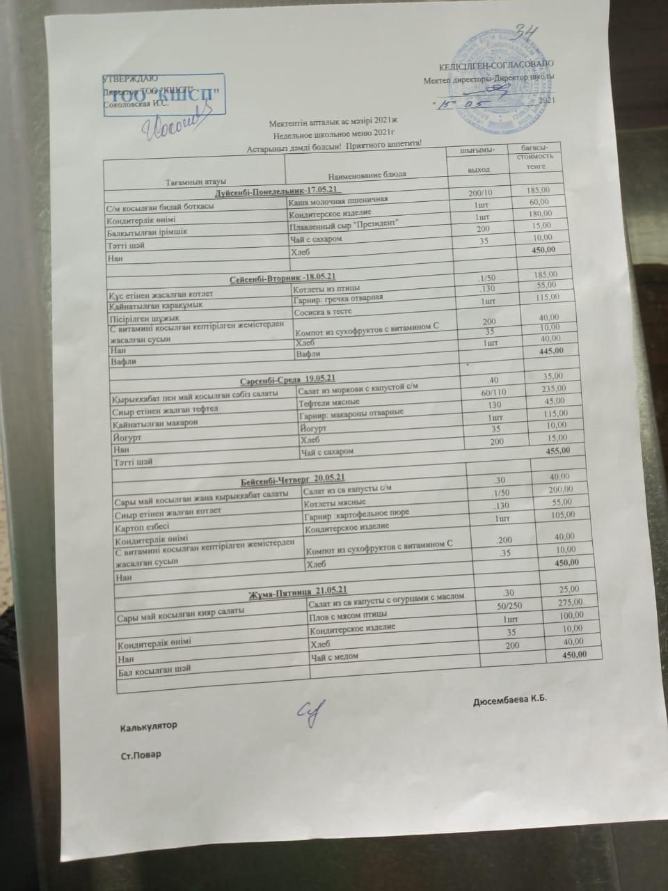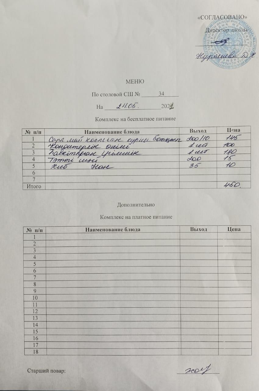 Мектептің ас мәзірі 17.05.-24.05.2021 жыл » СШ №34