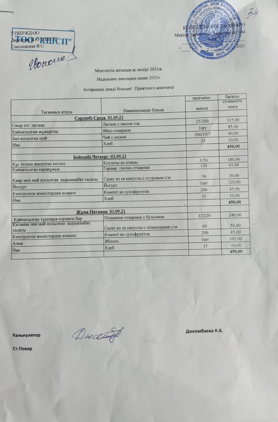 Мектептің ас мәзірі 01.09.-03.09.2021 жыл » СШ №34