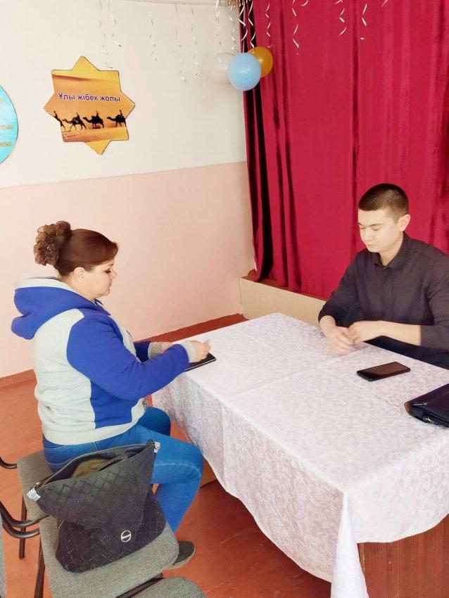 10:00 - 12:00 аралығында Сатыбалдиев Ануар Талгатұлы қорғаушы көмекке мұқтаж, ата-аналар мен педагогтарға құқықтық кеңестер берді.