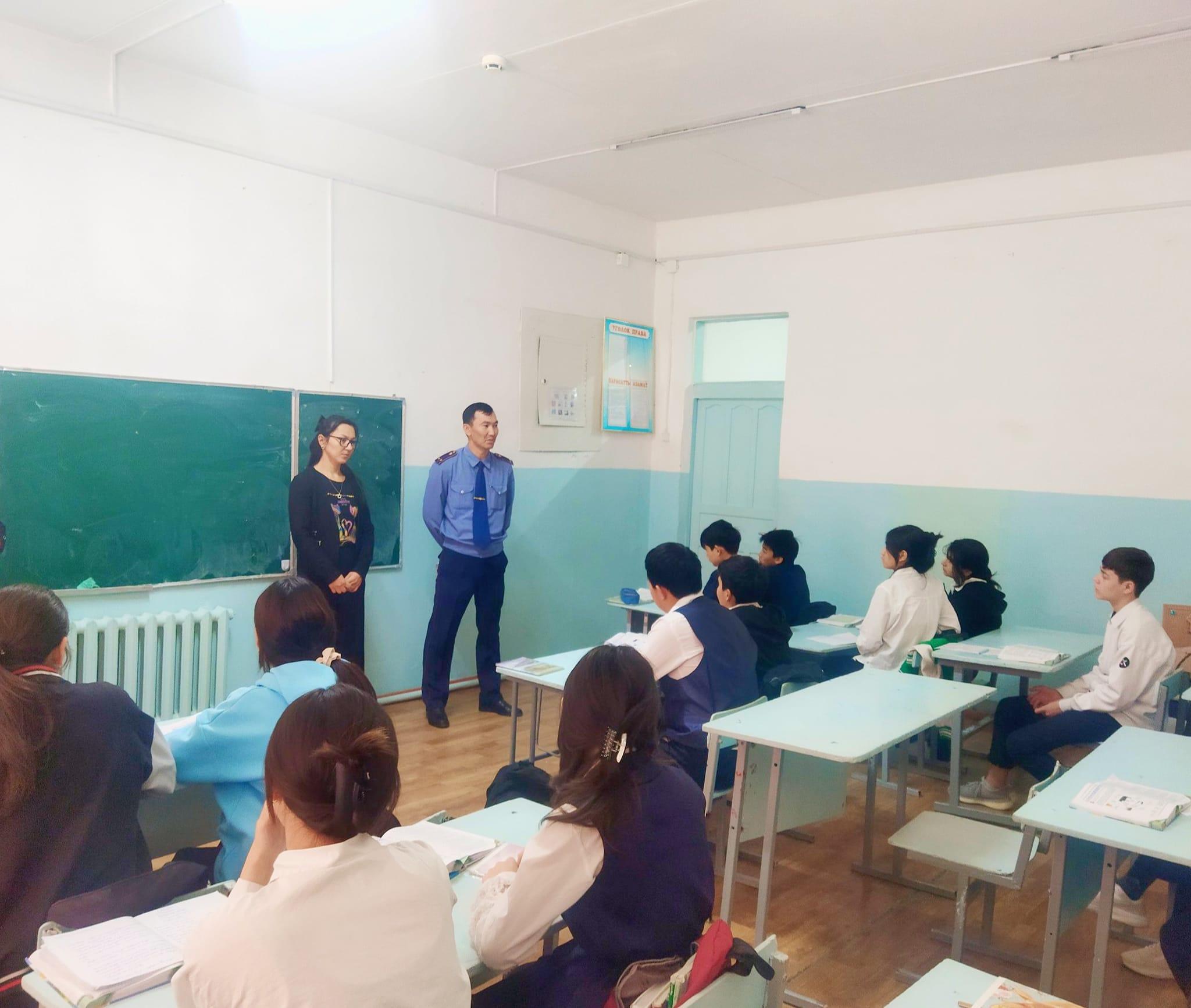 Мектеп инспекторы С.А.Бакабаев оқушыларға түсіндіру жұмыстарын жүргізді.