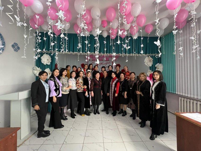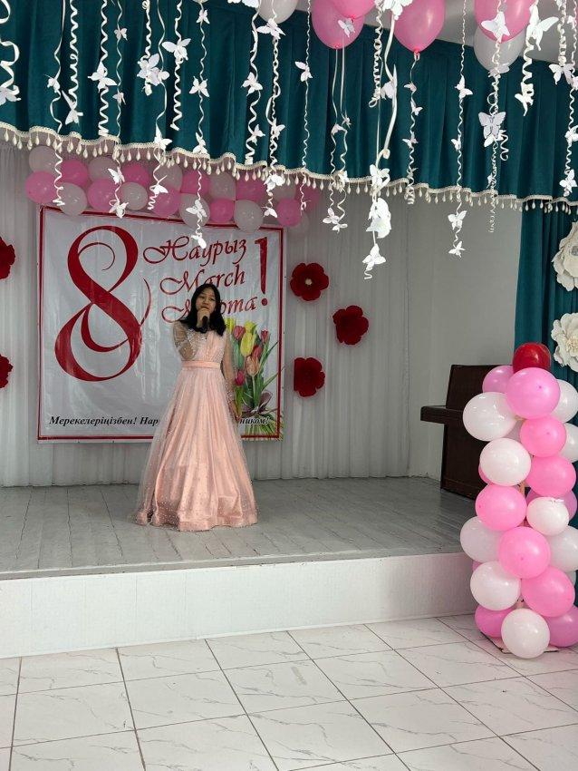 Мектеп директоры Нуралиева Динара Хатамовна нәзік жанды әйелдер қауымын шуақты мерекемен құттықтап, құрмет грамоталарын табыстады.