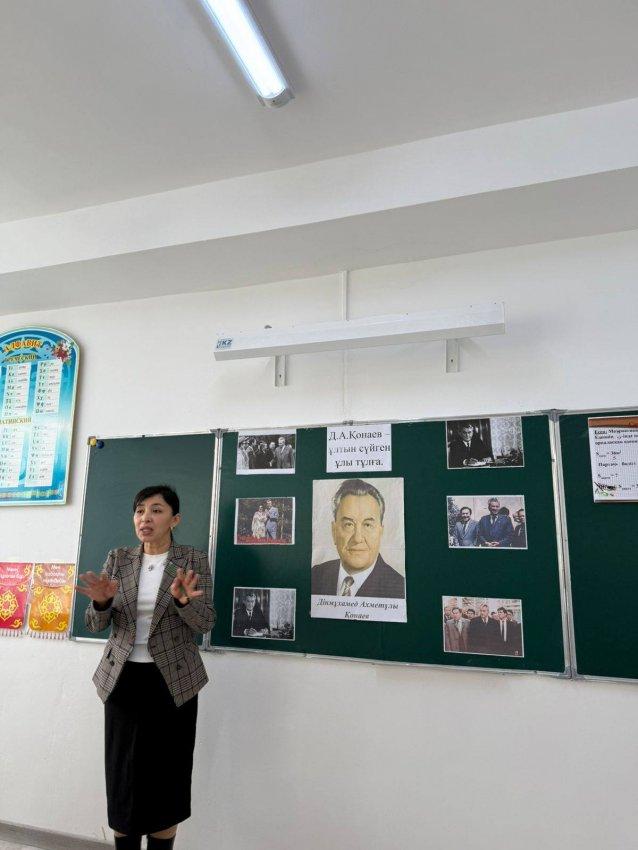 🔰«Дінмұхамед Ахметұлы Қонаев – дара тұлға» сынып сағаты 🔰Дінмұхамед Ахметұлы Қонаев – Қазақстанның тарихындағы аса көрнекті мемлекет және қоғам қайраткері.