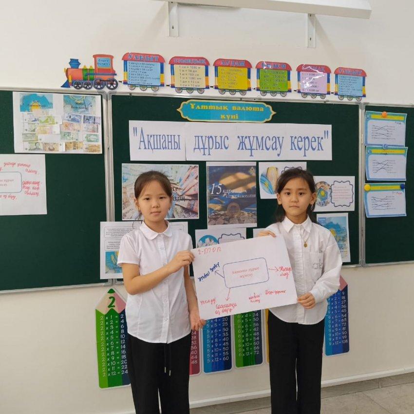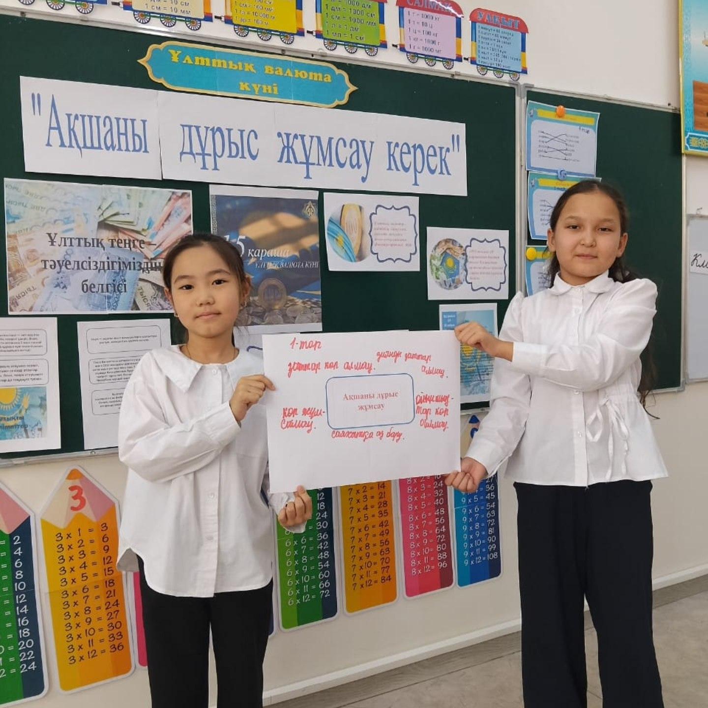 Сынып сағаты барысында оқушылар топпен жұмыс, сатып алу ережесі тапсырмаларын орындап, «Досыңа ақшаны қалай дұрыс жұмсауға кеңес берер едің?» атты шағын көріністер арқылы ақшаның маңыздылығын түсінді, теңгеге байланысты мақал – мәтелдер айтылды, «Ақшаны үнемдеудің пайдасы» туралы ережелерді білді.