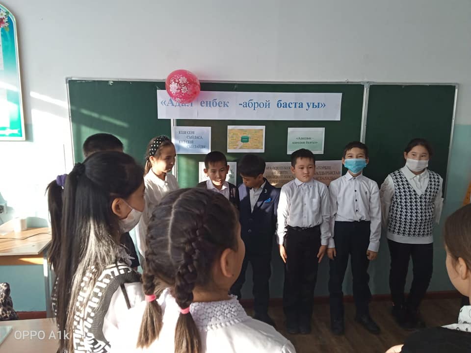КГУ"Средняя школа №34" отдела образования города Тараз » Іс-шаралар » 🔰Елбасы Н.Ә.Назарбаевтың «Болашаққа бағдар: Рухани жаңғыру» бағдарламасын іске асыру аясында «Адал еңбек – абырой бастауы» тақырыбында 5 «А» сыныбында тәрбие сағаты өткізілді. Сынып жетекшісі: Б.М.Сметова