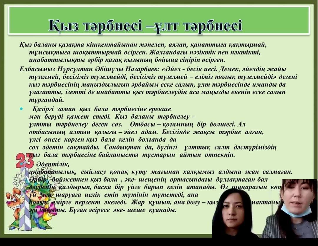 КГУ"Средняя школа №34" отдела образования города Тараз » Іс-шаралар » 27.01.22г был проведен вебинар на тему "Воспитание девочки- воспитание нации". Цель: воспитание подрастающего поколения , формирование позитивного отношения к целомудрию, нравственной чистоте, к поиску положительного нравственного идеала.