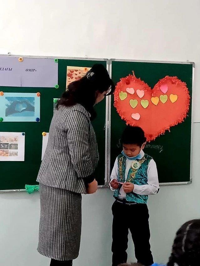 КГУ"Средняя школа №34" отдела образования города Тараз » Іс-шаралар » Өзін өзі тану бірлестігінің “Сүйіспеншілік пен шығармашылық педагогикасы" атты онкүндігінің жоспары аясында пән мұғалімі Оңдасын Ақерке 4”Ә"сынып оқушыларымен “Сүйіспеншілік жолындағы өмір “ тақырыбында сыныптан тыс іс -шара өткізді .