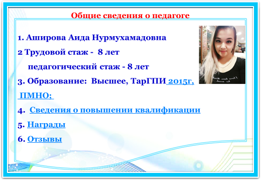 » » » ПОРТФОЛИО УЧИТЕЛЯ НАЧАЛЬНЫХ КЛАССОВ АШИРОВОЙ АИДЫ НУРМУХАМАДОВНЫ