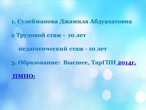» » » ПОРТФОЛИО УЧИТЕЛЯ НАЧАЛЬНЫХ КЛАССОВ СУЛЕЙМАНОВОЙ Д.А.