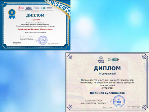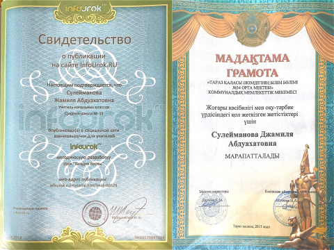 ПОРТФОЛИО УЧИТЕЛЯ НАЧАЛЬНЫХ КЛАССОВ СУЛЕЙМАНОВОЙ Д.А. » СШ №34