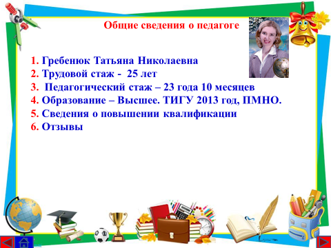 ПОРТФОЛИО УЧИТЕЛЯ НАЧАЛЬНЫХ КЛАССОВ ГРЕБЕНЮК ТАТЬЯНЫ НИКОЛАЕВНЫ