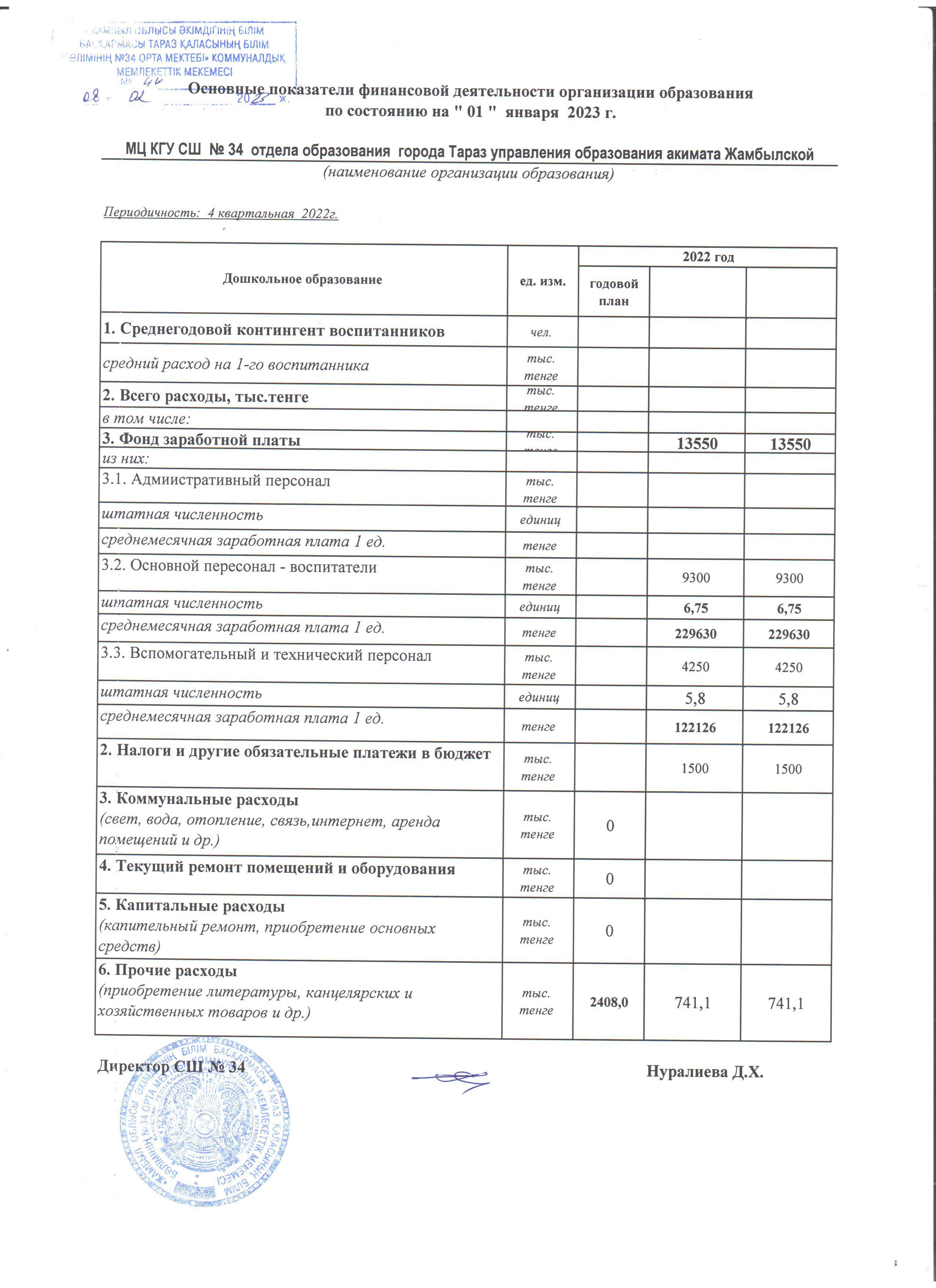08 февраль 2023 0 1 2 3 4 5 Основные показатели финансовой деятельности организации образования по состоянию на "01" января 2023г.