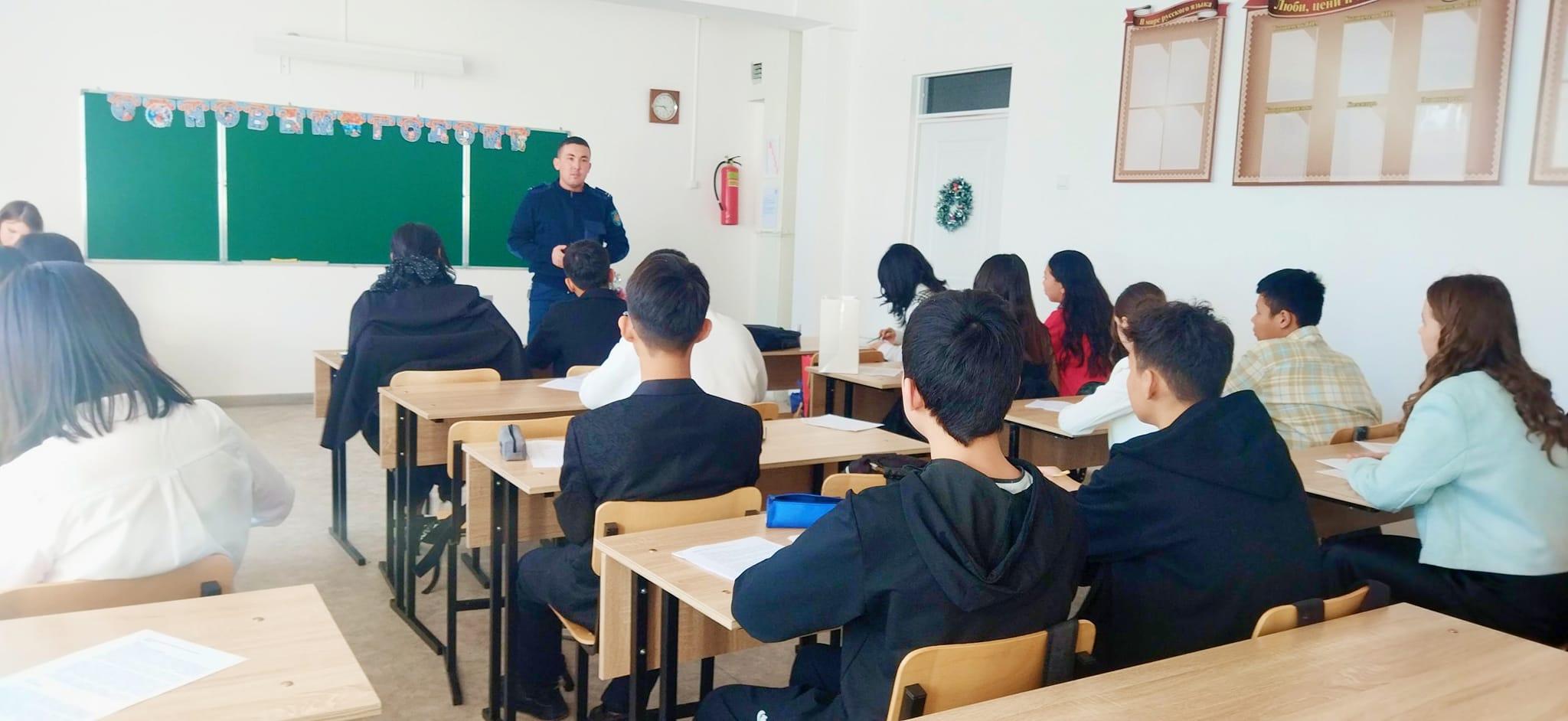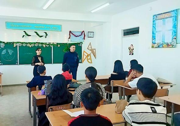 🔰28.12.2023 жылы Тараз қаласы №34 орта мектебінде 1-11 сынып оқушыларына ПБ 2-ПБ ЖПҚБ ЮПТ УПИ полиция лейтенанты А.К.Абдралиев, ә