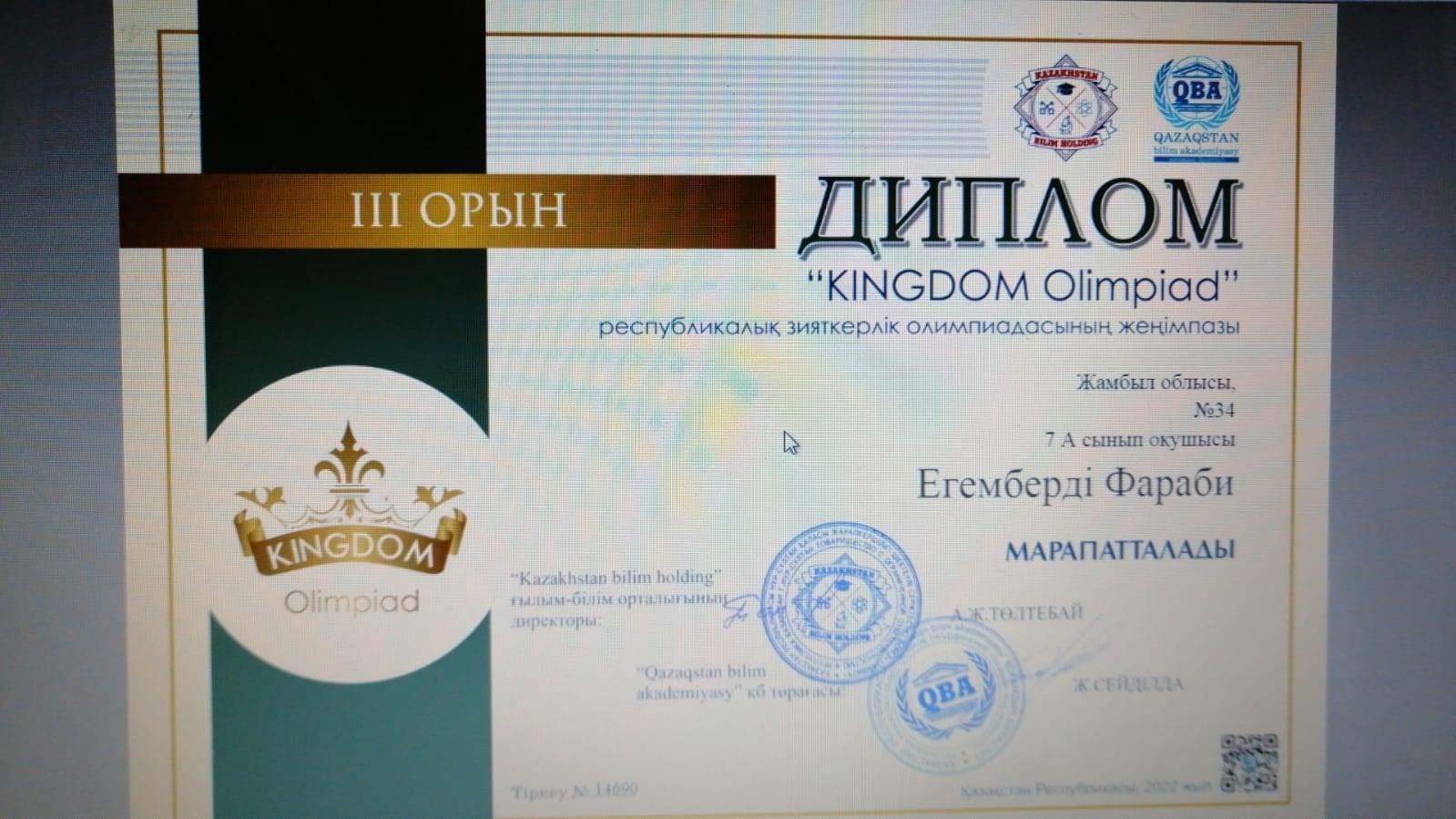 26 апрель 2022 0 1 2 3 4 5 5 сынып оқушылары Курбанов Даниял, Сегізбай Кәусәр, Турекулова Бегімай, Мусаева Мадина, 6 сынып оқушылары Баймен Досжан, 7 сынып оқушысы Егемберді Фараби,