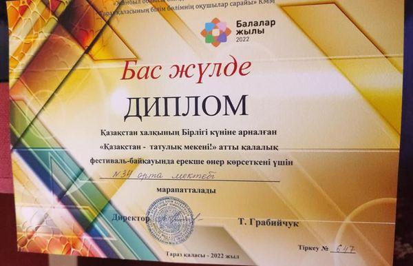 🔰Қазақстан халқының Бірлігі күніне арналған "Қазақстан - татулық мекені!" атты қалалық фестиваль - байқауында №34 орта мектебінің 8 "Б" оқушылары ерекше өнер көрсеткені үшін БАС ЖҮЛДЕ иеленді.
