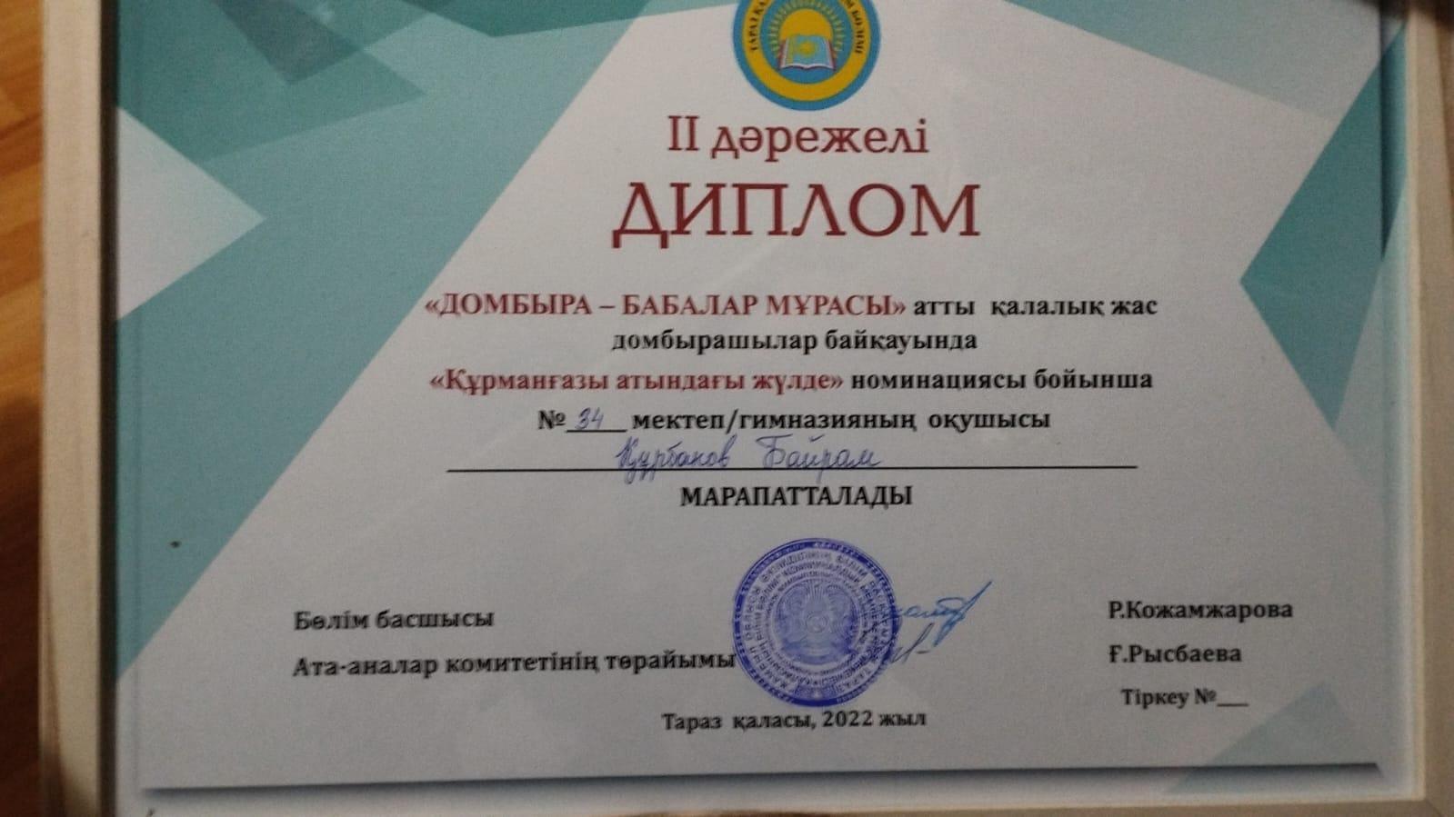 ✅ "Домбыра- бабалар мұрасы" атты қалалық жас домбырашылар байқауында "Құрманғазы атындағы жүлде" номинациясы бойынша 8 сынып оқушысы Құрбанов Байрам жүлделі 2 орынды иеленді👏👏👏 ҚҰТТЫҚТАЙМЫЗ!!! » СШ №34