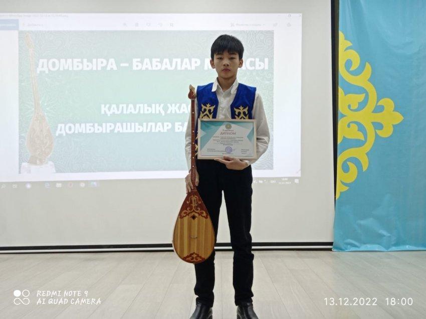 ✅ "Домбыра- бабалар мұрасы" атты қалалық жас домбырашылар байқауында "Құрманғазы атындағы жүлде" номинациясы бойынша 8 сынып оқушысы Құрбанов Байрам жүлделі 2 орынды иеленді👏👏👏 ҚҰТТЫҚТАЙМЫЗ!!!