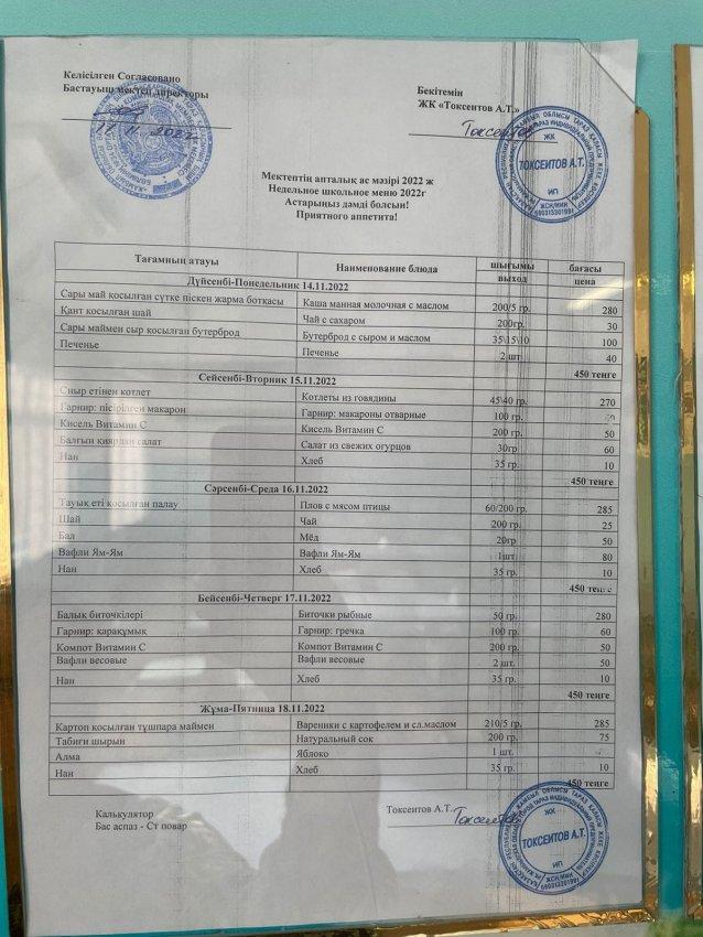 » Мектептің апталық ас мәзірі! 14.11-18.11.2022ж