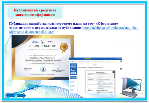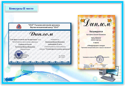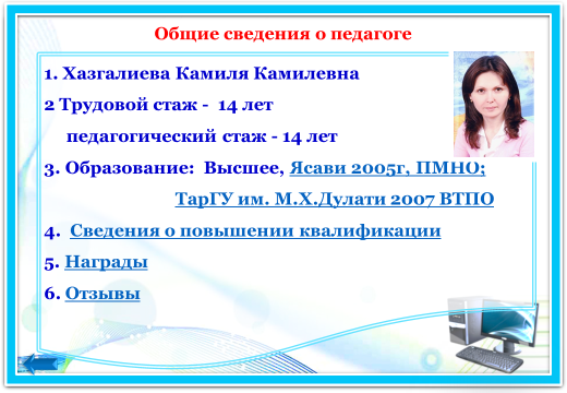 ПОРТФОЛИО УЧИТЕЛЯ ИНФОРМАТИКИ ХАЗГАЛИЕВОЙ КАМИЛИ КАМИЛЕВНЫ » СШ №34